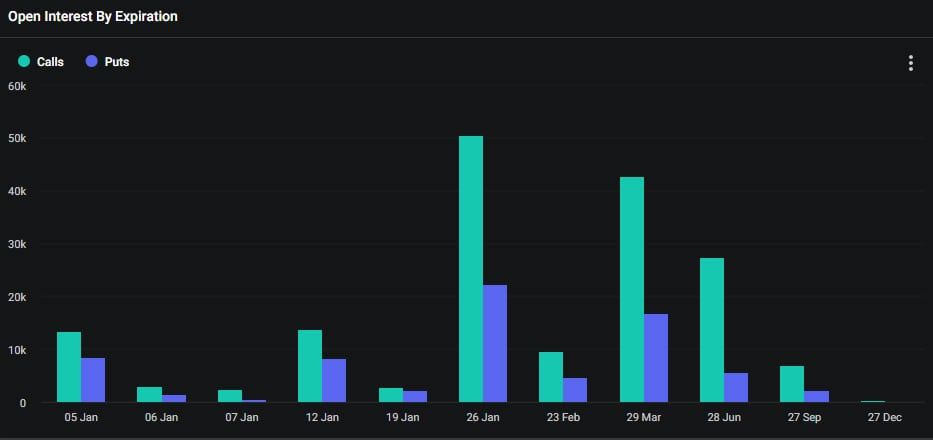 El hecho de que haya una concentración tan grande de opciones de compra a 50,000 dólares sugiere que los traders están anticipando que el precio de Bitcoin subirá a finales del vencimiento de enero.