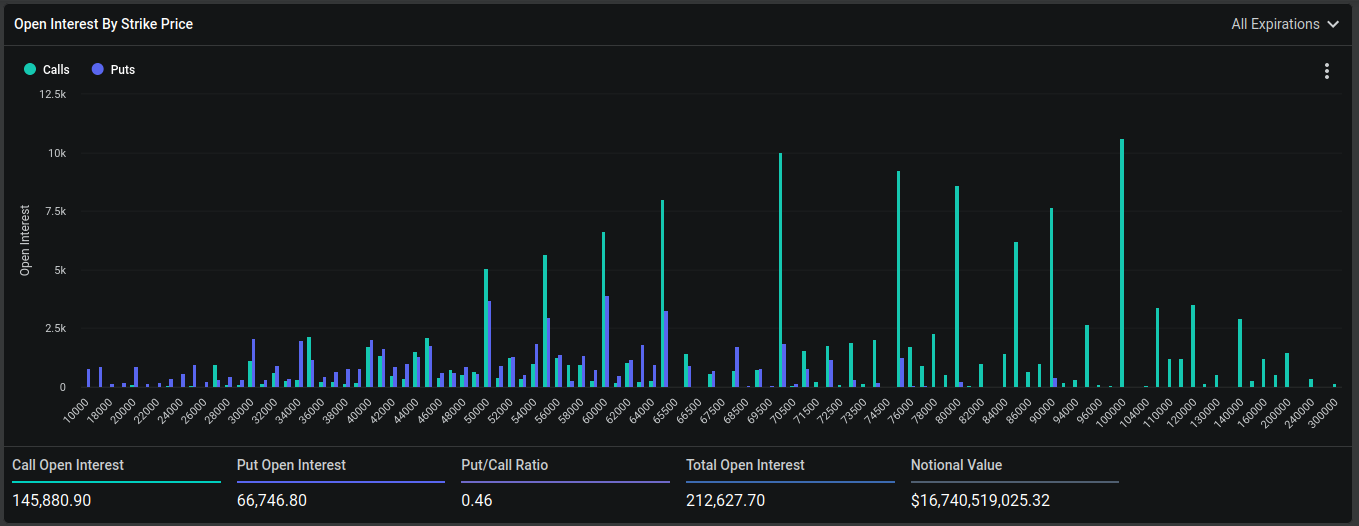 Según datos de Deribit, el mayor volumen de contratos se concentra en el precio de ejercicio de 50,000 dólares. Esto significa que si el precio de Bitcoin se encuentra por encima de esta marca al momento del vencimiento, los compradores de las opciones “call” obtendrán beneficios, mientras que los vendedores (put) tendrán pérdidas.