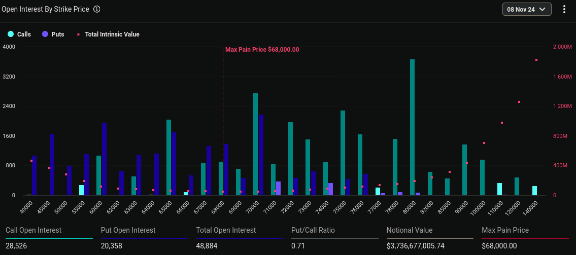 El mercado de las criptomonedas se enfrenta a un evento muy importante este 8 de noviembre, cuando casi 4,6 mil millones de dólares en contratos de opciones de Bitcoin (BTC) y Ethereum (ETH) expiren. La relevancia del vencimiento de las opciones es que ocurrirá horas después del máximo histórico registrado por BTC