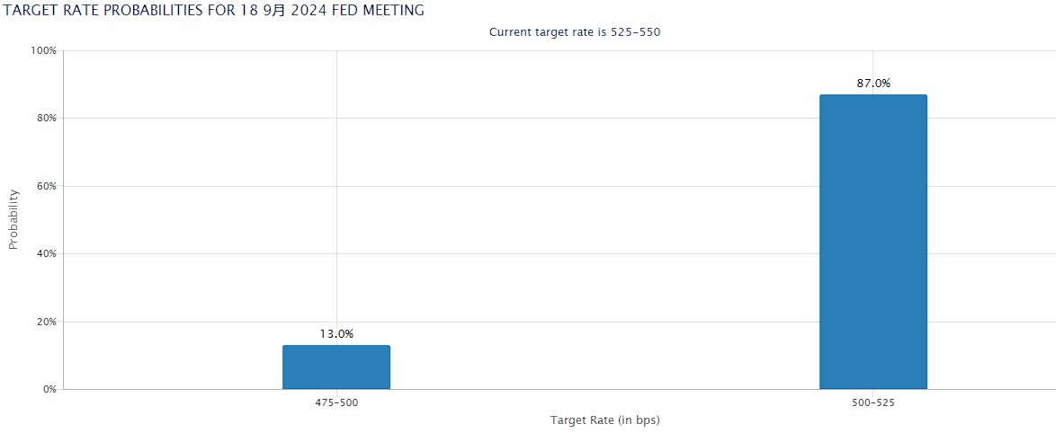 “La semana está llegando a su fin, el debate presidencial de EE. UU. y varios datos macroeconómicos no han traído una volatilidad significativa. La semana que viene, las expectativas de recorte de tasas de la Fed están convergiendo gradualmente y, actualmente, según los datos de transacciones de tasas de interés proporcionados por CME, la probabilidad de un recorte de tasas de 25 puntos básicos la próxima semana es del 87%, y la probabilidad de un recorte de tasas de 50 puntos básicos es solo del 13%”.