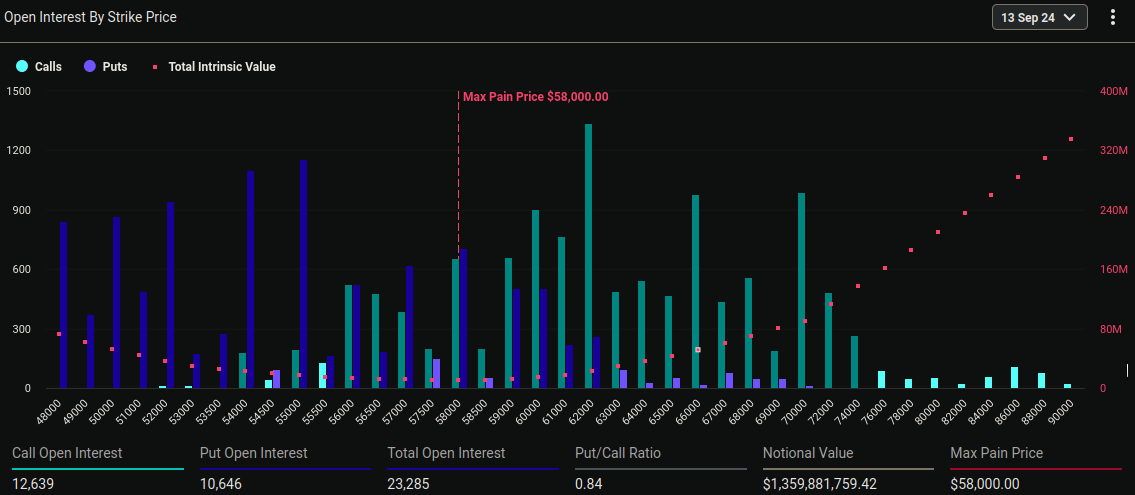 Además, el llamado “punto de dolor máximo”, es decir, el precio donde los holders de opciones experimentarían las mayores pérdidas, se sitúa en 58,000 dólares para Bitcoin.