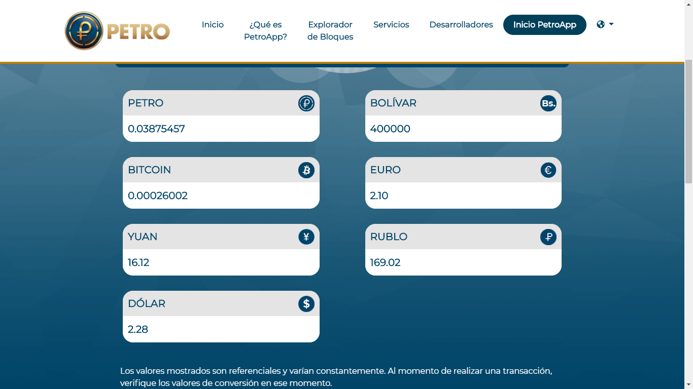 La administración de Nicolás Maduro ideó al Petro como una estrategia para implementar una suerte de dolarización indirecta que lograra conseguir una estabilidad en la economía nacional. Sin embargo no han conseguido dar en el clavo pues la adopción y confianza en la criptomoneda es aún muy limitada —sin contar con el hecho de que Estados Unidos ha dejado claro que no tolerará el comercio en este token.