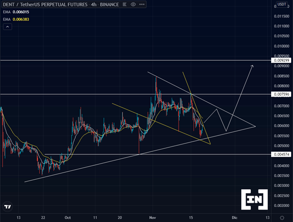 Dent se encuentra en un soporte muy sólido ubicado entre los 0.005 dólares y los 0.006 dólares.