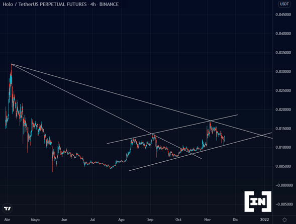 Holo se encuentra dentro un canal alcista saludable, consolidando el soporte ubicado en los 0.01 dólares.