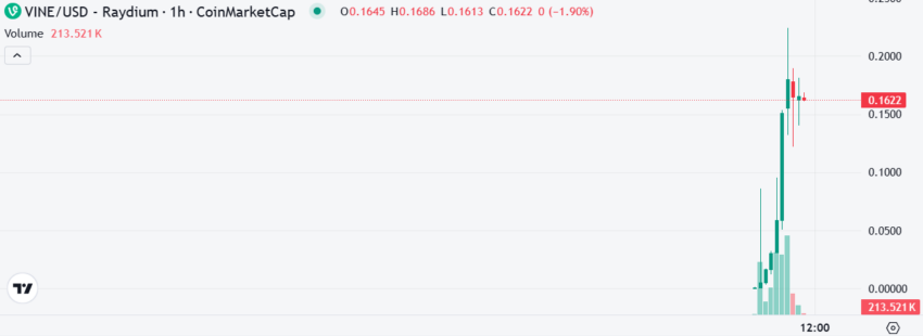 ¿Alguna vez has oído hablar de Vine Coin (VINE)? Se lanzó ayer en Raydium y otras plataformas similares, antes de arrasar en el mercado. VINE ha aumentado más del 300.000% de su valor en las últimas 24 horas, pasando de 0.00003 dólares a un ATH de 0.22 dólares.