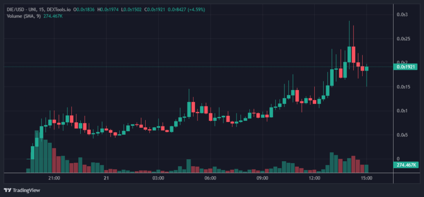 Se habla mucho en la comunidad cripto sobre DIE. Actualmente tiene una capitalización de mercado de 8,6 millones de dólares, con significativamente más compras que ventas. La liquidez actualmente supera los 400,000 dólares.