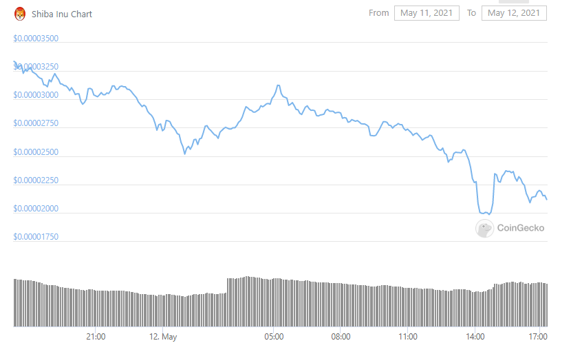 La tarde el miércoles 12 de mayo ha sido muy intensa para las criptomonedas meme, en especial para el token Shiba Inu.