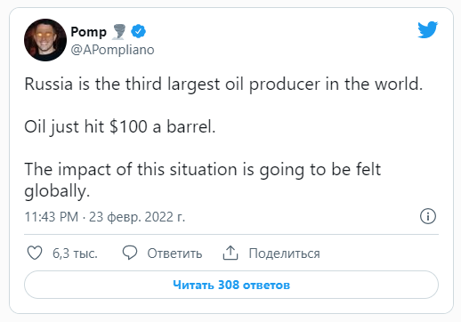 “Rusia es el tercer mayor productor de petróleo del mundo. El petróleo acaba de alcanzar los 100 dólares el barril. Las consecuencias de esta situación se sentirán en todo el mundo”.
