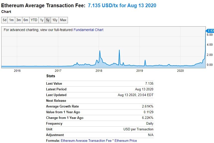 Sin embargo, esto viene con un costo —o varios, dependiendo de la situación: la blockchain está tan congestionada que podría colapsar. Actualmente, el auge de las stablecoins, las dapps, las DeFi y los exchanges descentralizados de criptomonedas han hecho que se mueva más valor en Ethereum que en la propia cadena de Bitcoin, y las comisiones por transacción estén subiendo como la espuma. ETH se encuentra nuevamente al borde.