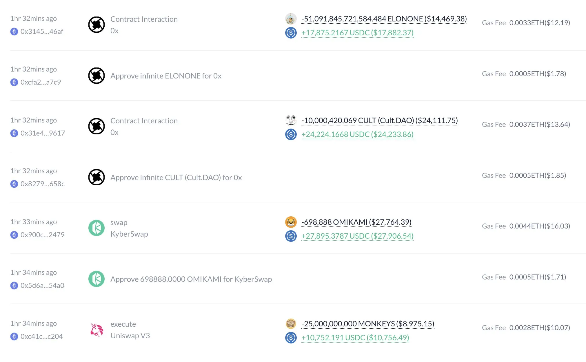 Las ventas de hoy reflejaron esta noción. Vendió 80.47 billones de tokens JSHIBA por 21,466 dólares USDC, mientras que 92,000 tokens DOGE valían 35,233 dólares USDC. Casi todos los activos se vendieron por menos de 100,000 dólares USDC, pero esto podría significar deshacerse de unos pocos miles o de muchos billones. En otras palabras, su acto de caridad ha causado un verdadero caos en algunos de estos activos más pequeños.