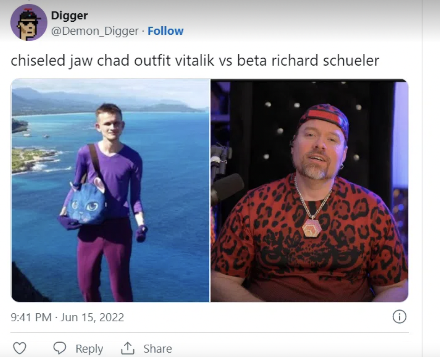 Buterin es un ícono de la moda en este momento, que otros alfas están comenzando a sentir el calor. Están siendo criticados por sus elecciones de moda. Creo que la frase que se aplica es “tan nervioso como un simple”.