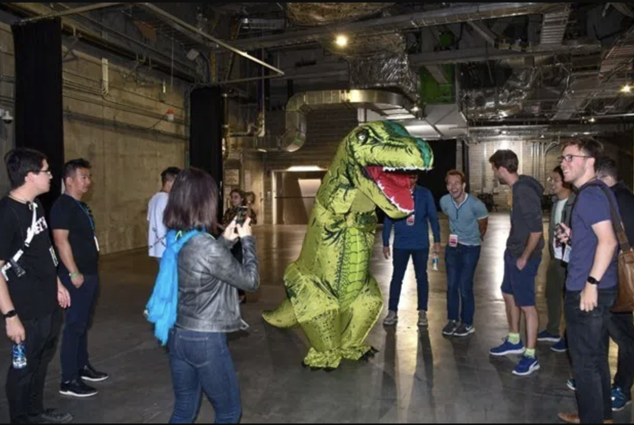SponsoredVitalik Buterin es el cofundador de Ethereum. En dicho evento, irrumpió en escena con un disfraz de dinosaurio verde. Ergo, continúa su reinado como rey de la alta costura.