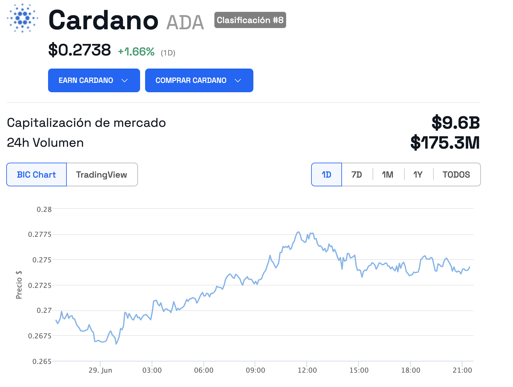 Muy posiblemente vinculado con la publicación de los reportes, el precio de ADA ha experimentado una tendencia alcista en las últimas 24 horas. Cabe recordar que el análisis técnico de ADA en el marco de tiempo diario indica que el precio de Cardano aumentó un 39% entre el 10 y el 25 de junio.