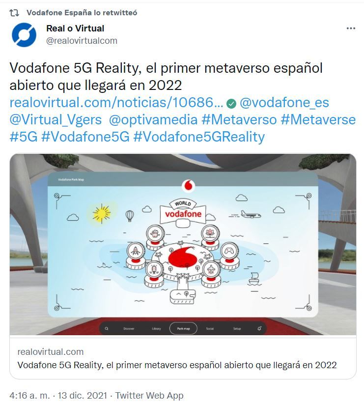 La empresa de telecomunicaciones Vodafone presentó su nuevo laboratorio 5G “Vodafone 5G Reality”, una plataforma con la que diseñará una estrategia para entrar al metaverso y será desarrollada en España y se prevé que salga al mercado en algún momento del primer semestre de 2022.