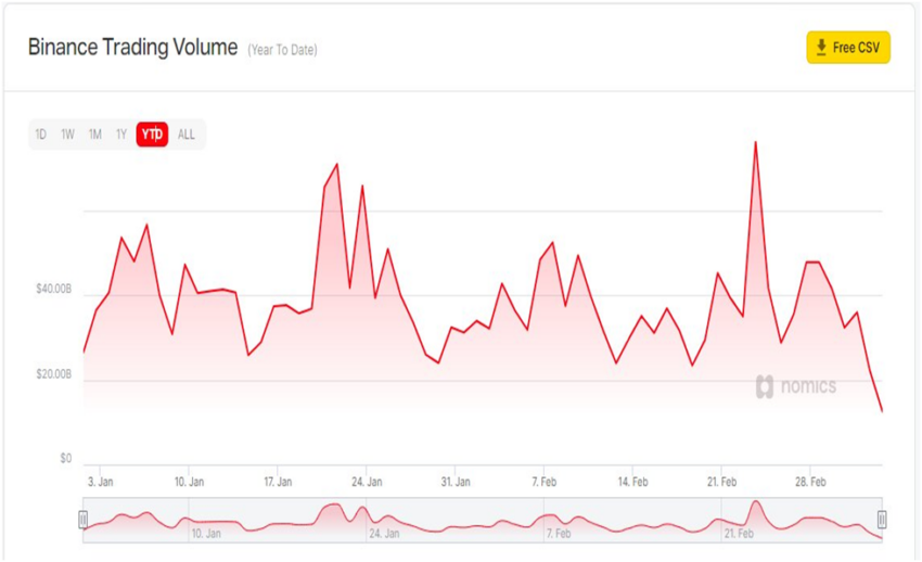 Febrero resultó ser un mes difícil para todo el espacio cripto y particularmente para los exchanges de criptomonedas. Binance registró aproximadamente 1,08 billones de dólares en volumen de trading durante el segundo mes de 2022, según datos obtenidos por BeInCrypto.