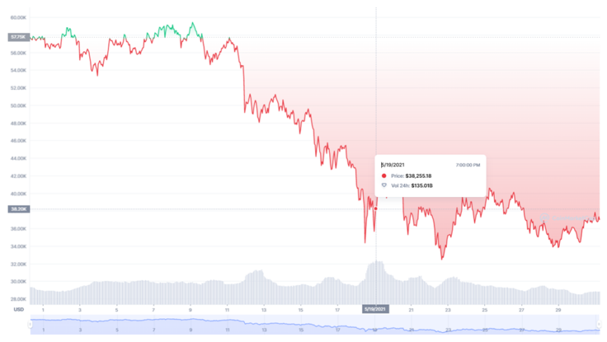 Cuando Binance alcanzó su máximo histórico en volumen en mayo de 2021, hubo un sentimiento positivo masivo en el mercado cripto. Ethereum cruzó los 4,000 dólares por primera vez ese mes y Bitcoin cotizaba por encima de los 50,000 dólares.