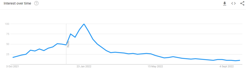 Además, se pudo ver un menor interés minorista e institucional en el espacio, ya que las tendencias de búsqueda de Google para la palabra “NFT” experimentaron una caída notable.