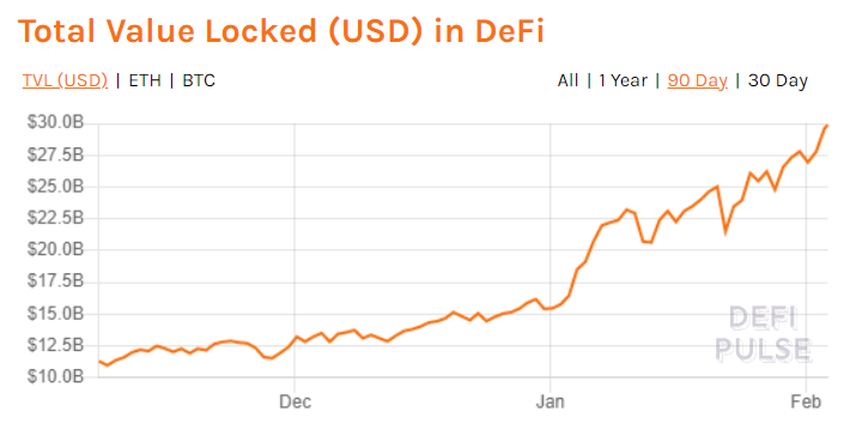 De hecho, muchos están entusiasmados con esta idea, como es evidente por el crecimiento casi exponencial del ecosistema desde mediados de 2020. Según DeFi Pulse, más de 28 mil millones de dólares en activos ya se han bloqueado en varios protocolos. Una gran variedad de aplicaciones, desde juegos hasta seguros, pueden facilitarse a través de estos protocolos.