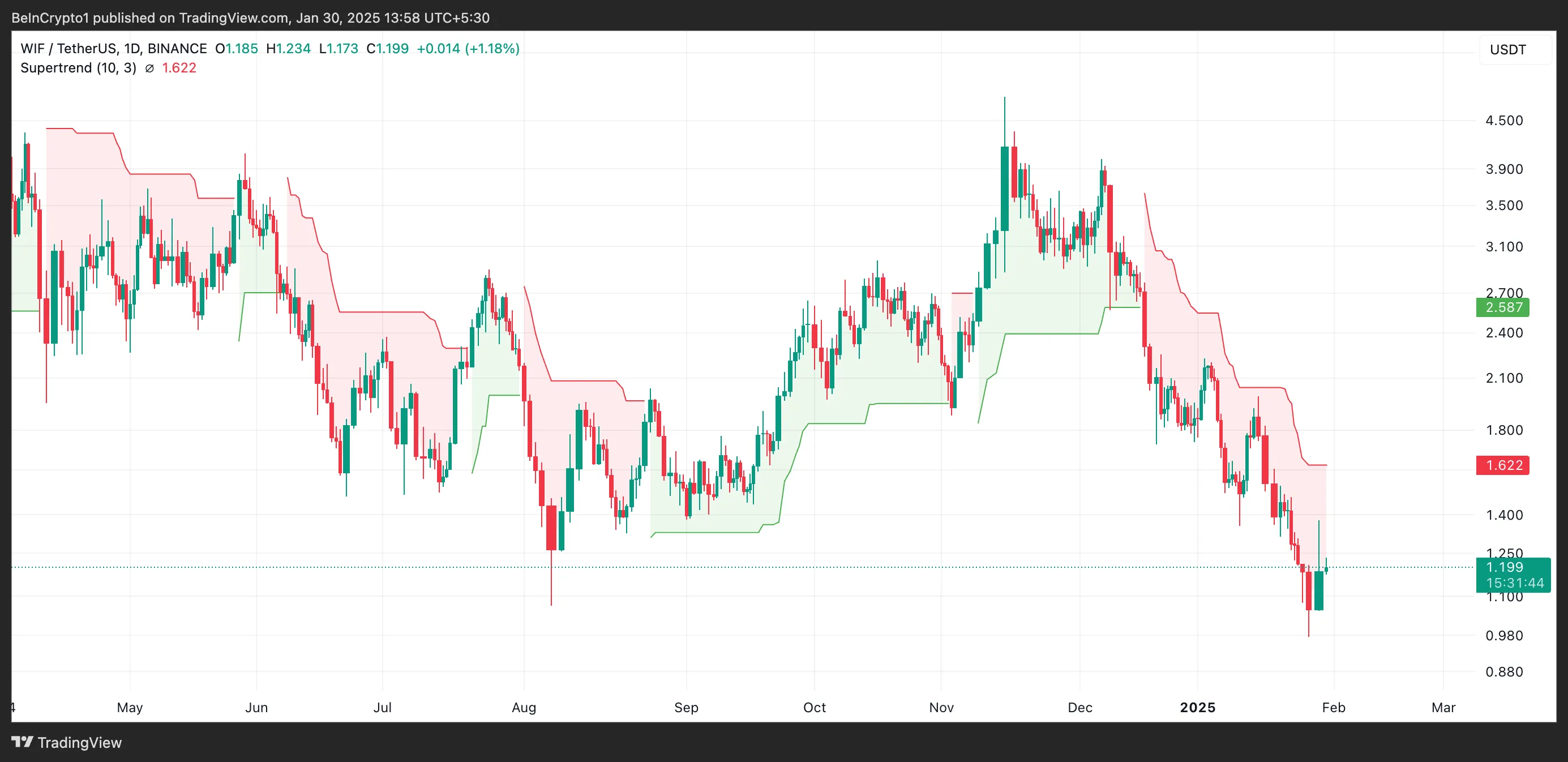 Sin embargo, si la actividad de compra se reanuda y los alcistas recuperan el dominio, podrían ser capaces de impulsar el precio de la memecoin por encima de la resistencia de soporte dinámico de su indicador Super Trend a 1,62 dólares. Una ruptura exitosa por encima de este nivel podría impulsar a WIF a negociarse a 1,83 dólares.