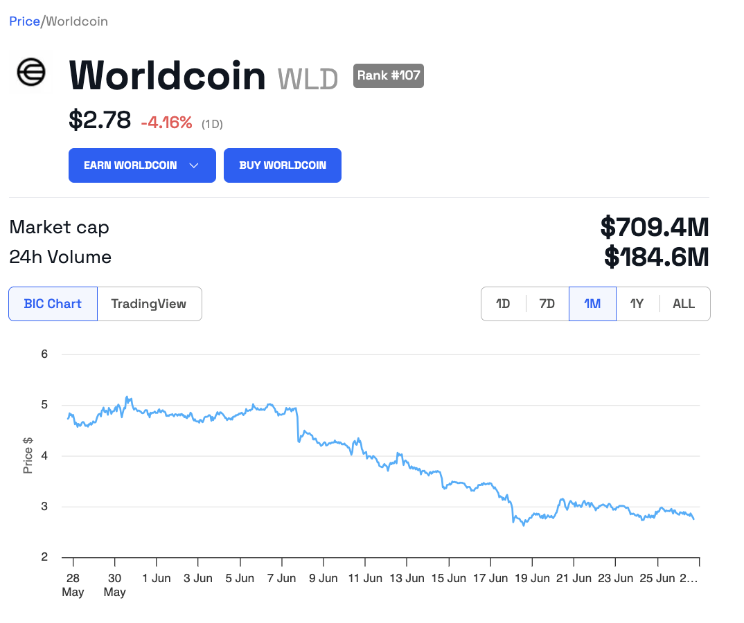 Tras el anuncio, el token nativo de Worldcoin (WLD) reaccionó de forma inestable, al pasar de 2,80 a 2,89 dólares, para posteriormente desplomarse más de 5%, hasta los 2,76 dólares. Incluso, su volumen de trading se ha desplomado en las últimas 24 horas en 9,51%, a 151.114 millones de dólares.