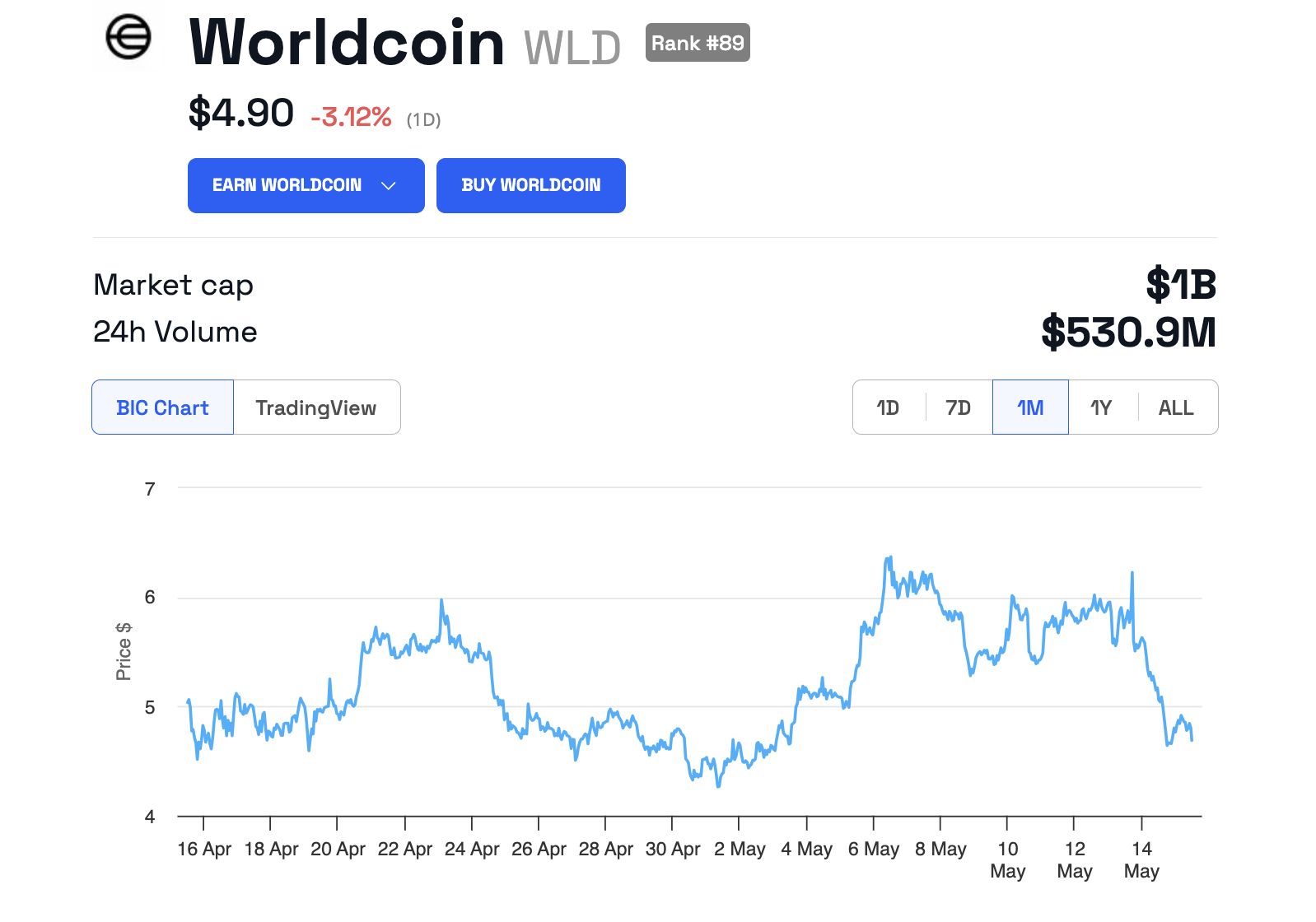 A pesar de este desarrollo, el precio de Worldcoin (WLD) se negocia a 4.90 dólares, cayendo alrededor de un 3% en las últimas 24 horas.