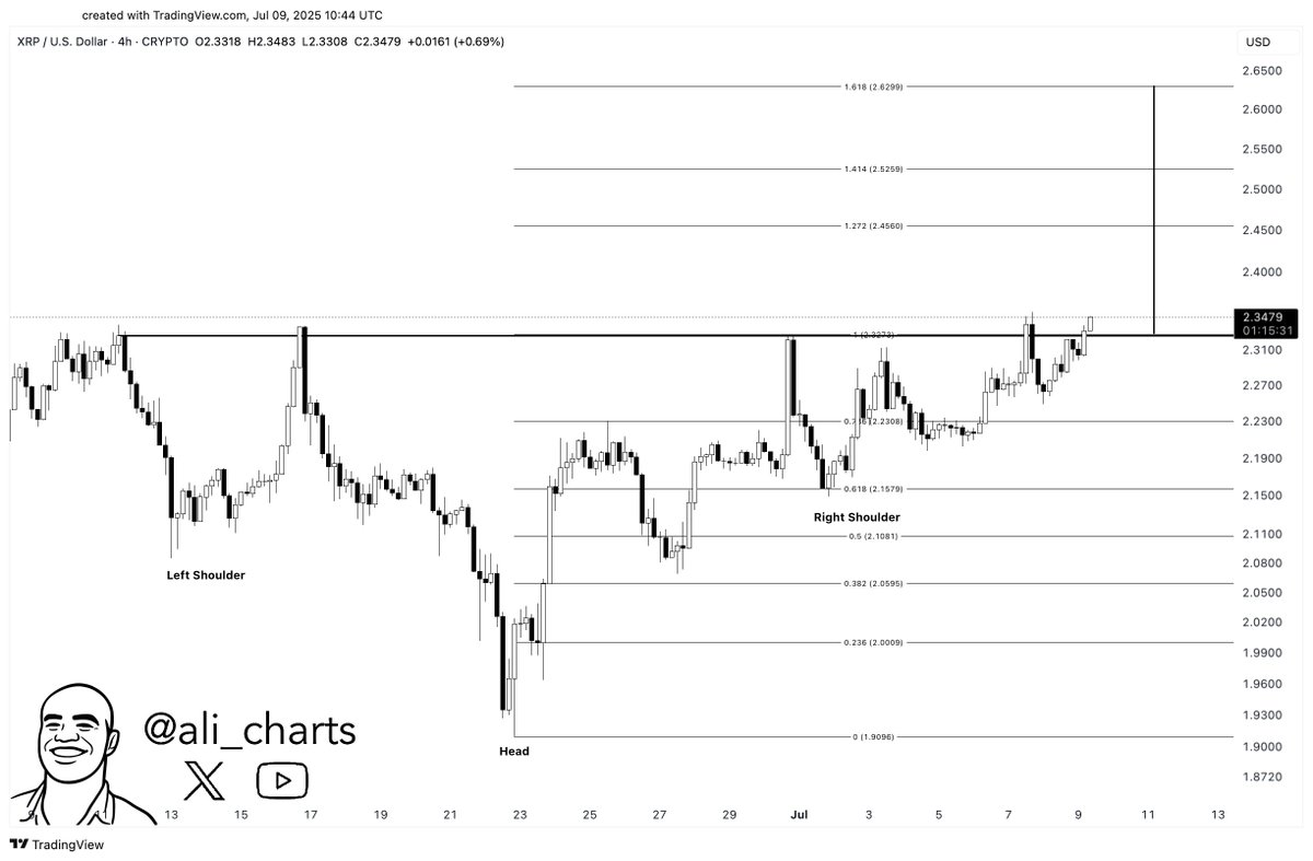 “¡$XRP está rompiendo al alza, apuntando a $2.60!”, señaló el analista on-chain Ali Martínez en X (antes Twitter).