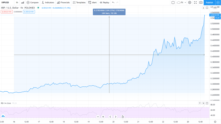 XRP ha aumentado a un ritmo significativamente más rápido que Bitcoin en los últimos siete días, acumulando un increíble 100% de 0.27 dólares a 0.54 dólares a partir del 23 de noviembre.