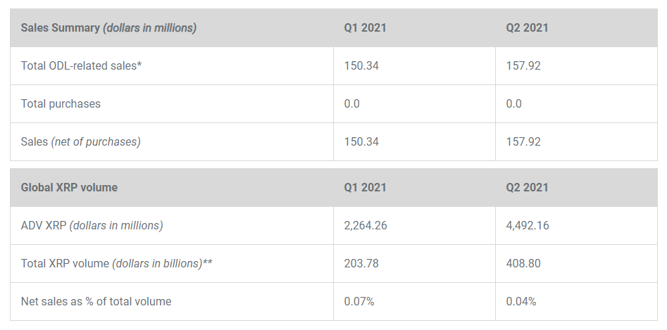 “Dado que a menudo los participantes del mercado los interpretan incorrectamente como ventas. Los arrendamientos finalmente se devuelven a Ripple. Los arrendamientos totales pendientes en el segundo trimestre de 2021 fueron 57,7 millones de XRP.