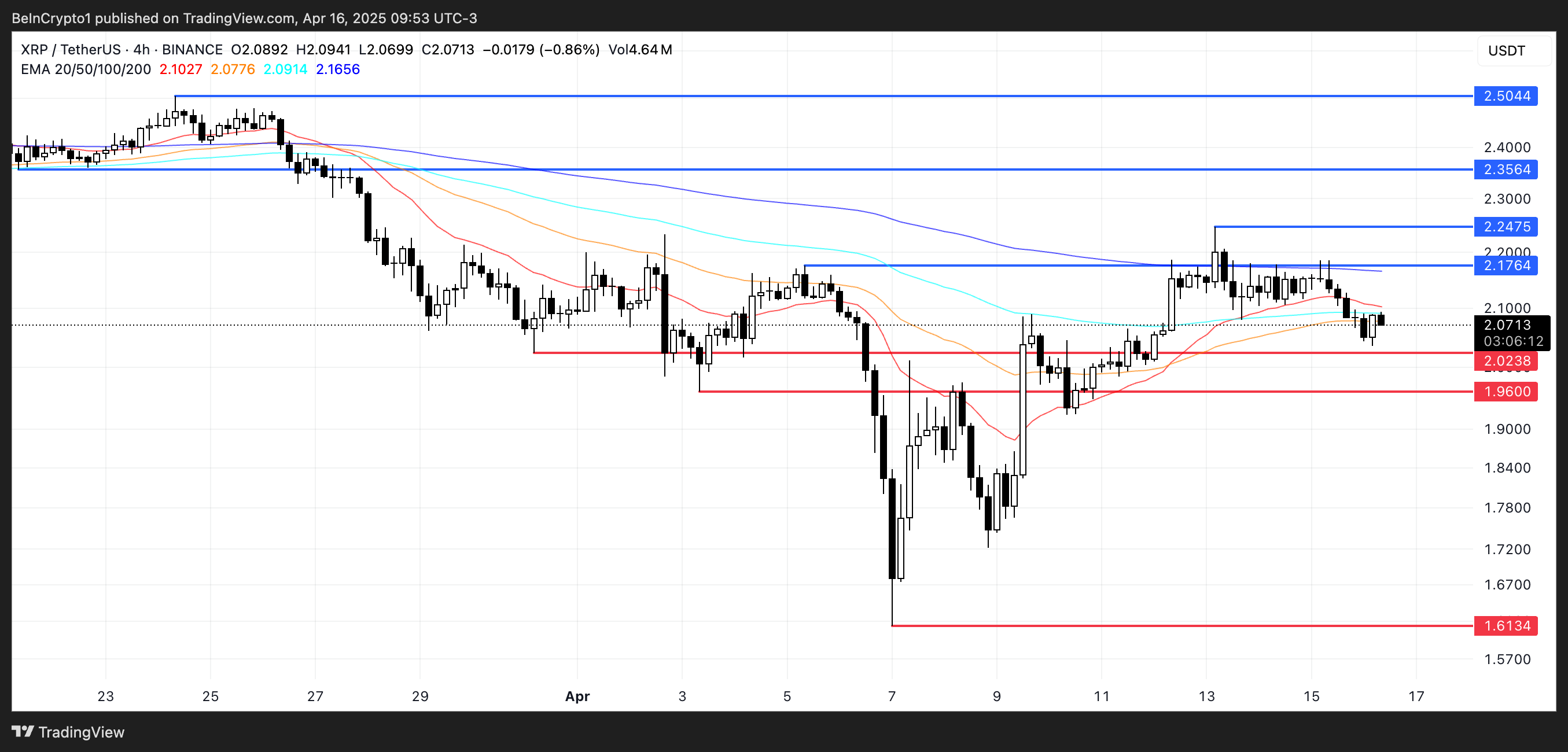 Las líneas EMA sugieren que XRP podría caer por debajo de 2 dólares