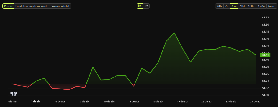 El escenario base proyecta consolidación entre 1.30-1.60 dólares durante mayo. La mediana histórica de abril sugiere movimientos más modestos, mientras factores como las tasas de la Reserva Federal y tensiones geopolíticas podrían limitar el potencial alcista del token a corto plazo.