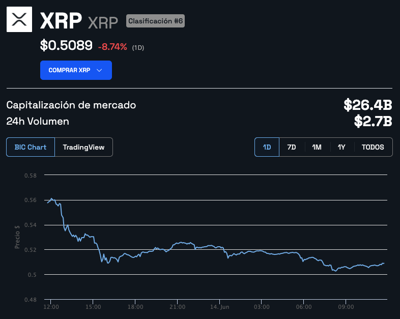 El precio de XRP baja convirtiéndose en la criptomonedas con mayor pérdida
