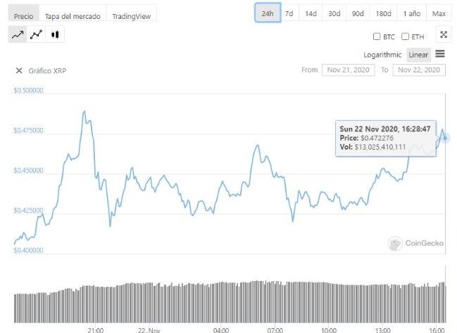 De acuerdo con cifras de CoinGecko, XRP aumentó un 73,6% en los últimos siete días, y un 87,3% en las últimas dos semanas. Asimismo, XRP registró un incremento del 40% en las últimas 24 horas, y se cotiza en 0,47 dólares al momento de redacción de este artículo.