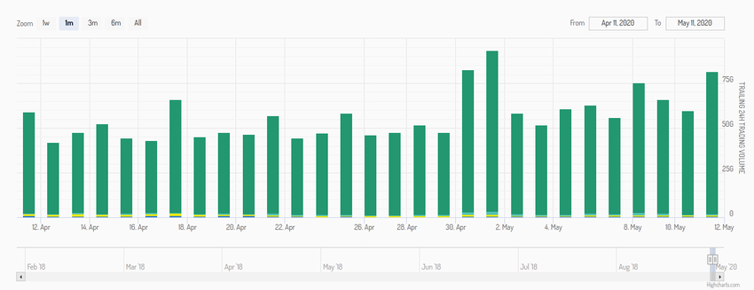 Según los datos del índice stablecoin de Messari, el dominio del USDT sigue siendo inigualable, y el volumen de operaciones de Tether empequeñece al resto del mercado. A modo de comparación, el volumen de 24 horas de Tether para el 11 de mayo se situó en unos 79.000 millones de dólares, mientras que Paxos (PAX), USD Coin (USDC) y TrueUSD (TUSD) registraron 826 millones, 628 millones y 546 millones de dólares, respectivamente