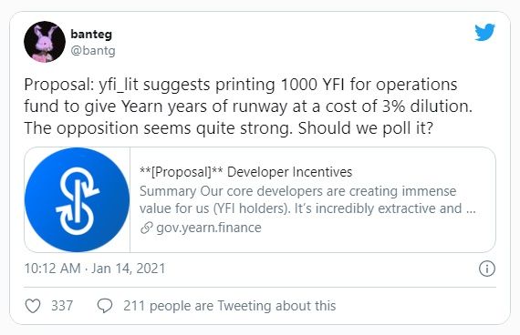 Sponsored SponsoredNaturalmente, todo se decidirá mediante una votación de gobernanza. El feed de Twitter del fundador Andre Cronje ha sido un desastre de memes durante el último día, pero un Tweet se destacó: